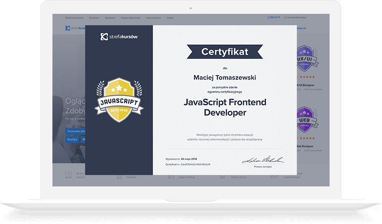 Uzyskaj imienny certyfikat w języku polskim i angielskim.